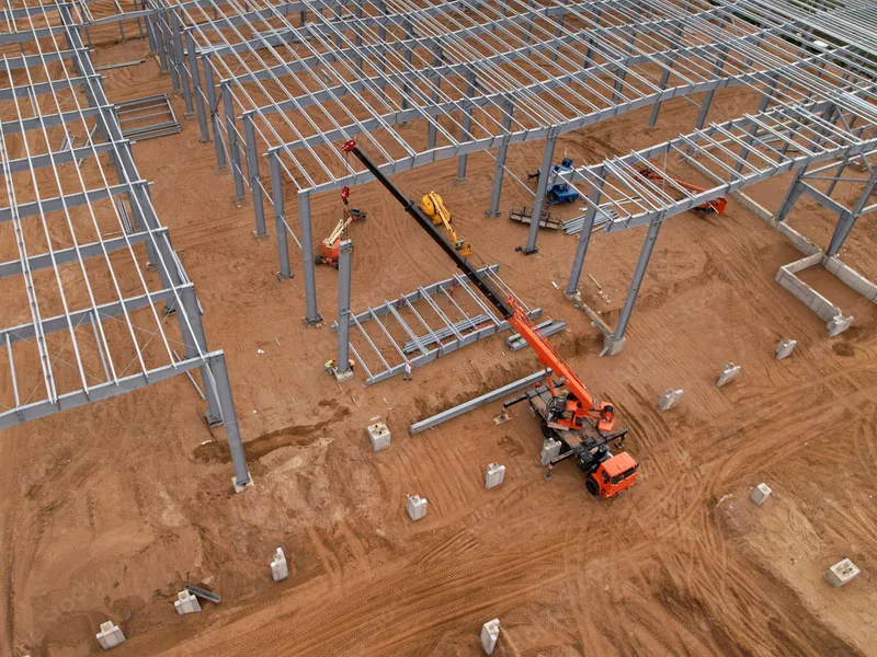 المكونات الفولاذية ، بما في ذلك العوارض والأعمدة والأقواس ، وترمسات السقف ، يتم صياغتها مسبقًا في إعداد المصنع. يتم استخدام الفولاذ عالي الجودة ، ويتم تصنيع المكونات وفقًا لمواصفات دقيقة لضمان حدوثها معًا بدقة وأمان أثناء التثبيت. تتيح هذه البيئة التي يتم التحكم فيها تدابير مراقبة الجودة الصارمة ، مما يضمن متانة وموثوقية المكونات.