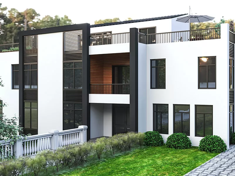 ● كفاءة الطاقة: تم تصميم منزل الفيلا بميزات موفرة للطاقة مثل الجدران والأسقف المعزولة، والنوافذ الموفرة للطاقة، وخيارات تكامل الألواح الشمسية، مما يقلل من استهلاك الطاقة وفواتير الخدمات.