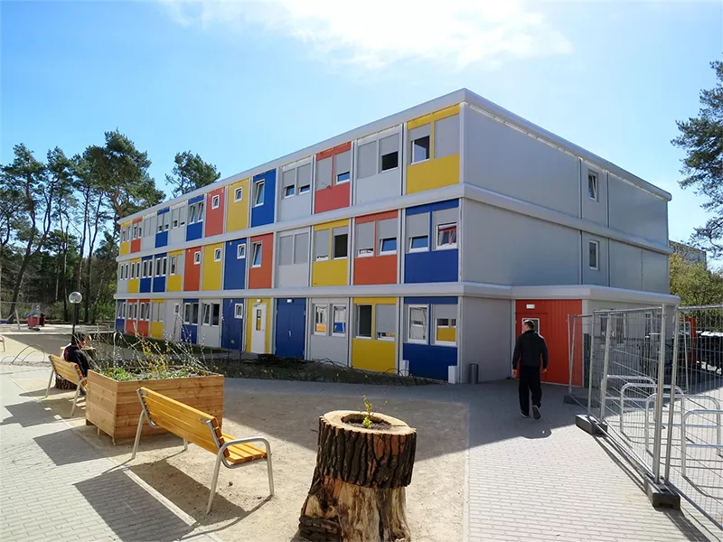 ● السكن المؤقت: مثالي لمواقع البناء، ومناطق الإغاثة في حالات الكوارث، أو أي حالة أخرى تتطلب سكنًا مؤقتًا.