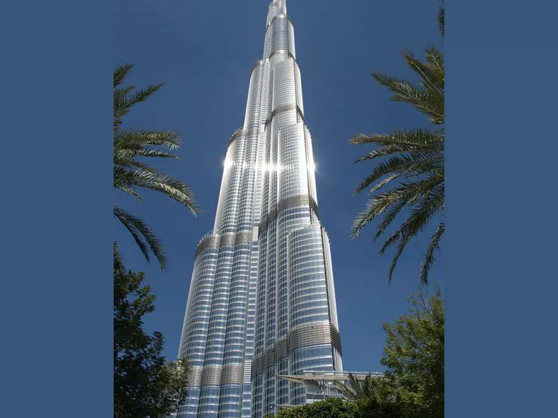 ● يعد Burj Khalifa في دبي ، الإمارات العربية المتحدة ، أطول مبنى في العالم ، مع إطار هجين خرساني الصلب. يبلغ طوله 163 طابقًا ويتراوح ما يزيد عن 828 مترًا.