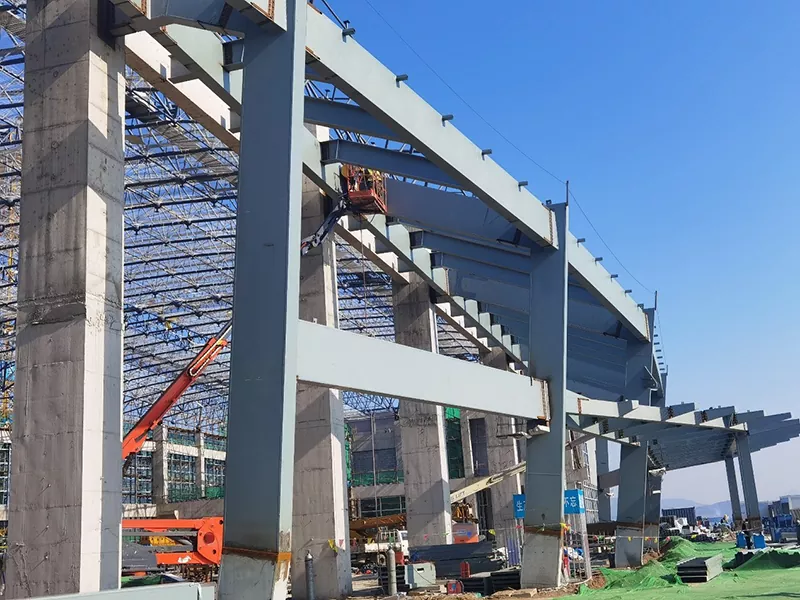 سرعة البناء السريعة: يمكن تصنيع جزء الهيكل الفولاذي مسبقًا في المصنع ومن ثم نقله إلى الموقع للتجميع، مما يوفر تكاليف الوقت.