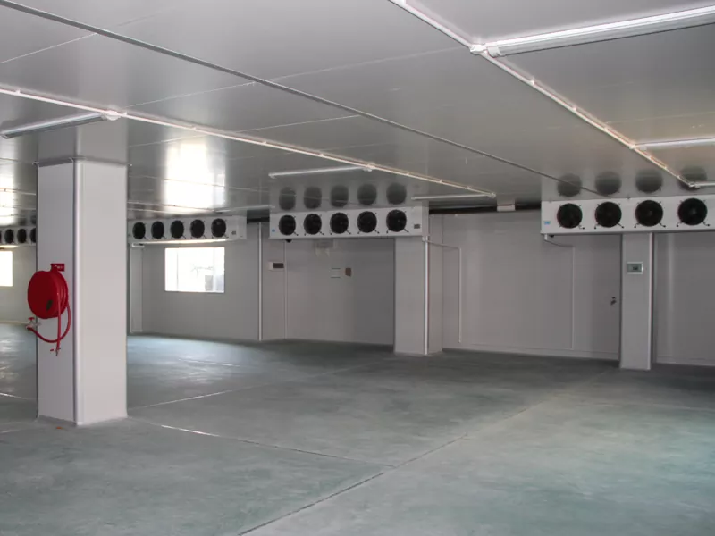 • جدران المستودع مصنوعة من مواد عزل مركبة متعددة الطبقات ومجتمعة مع تقنية ختم دقيقة لضمان درجة حرارة داخلية مستقرة. لا يمكن لمواد العزل هذه عزل تأثير درجات الحرارة الخارجية فحسب ، بل تقلل أيضًا من فقدان الهواء البارد ، وانخفاض استهلاك الطاقة ، وتحقيق تأثيرات لتوفير الطاقة.