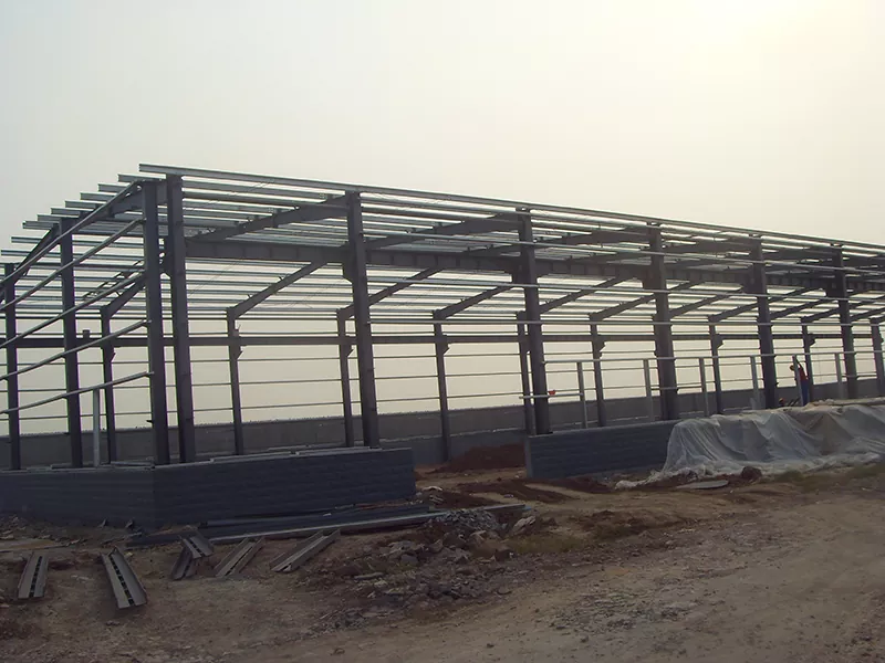 يتم تصنيع إطارات الصلب ، التي تشكل العمود الفقري الهيكلي للمستودع ، من الفولاذ عالي القوة لضمان المتانة والاستقرار. تم تصميم الإطارات لدعم السقف والجدران ، مما يوفر أساسًا متينًا للهيكل بأكمله.